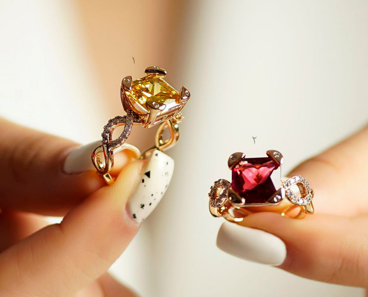 انگشتر تک نگین قرمز و زرد ژوپینگ مدل ملکه رنگ ثابت ضد حساسیت